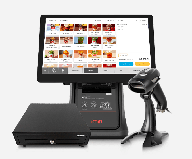 ○ ประกอบไปด้วย iMin D4 + ลิ้นชักเก็บเงิน + สแกนเนอร์