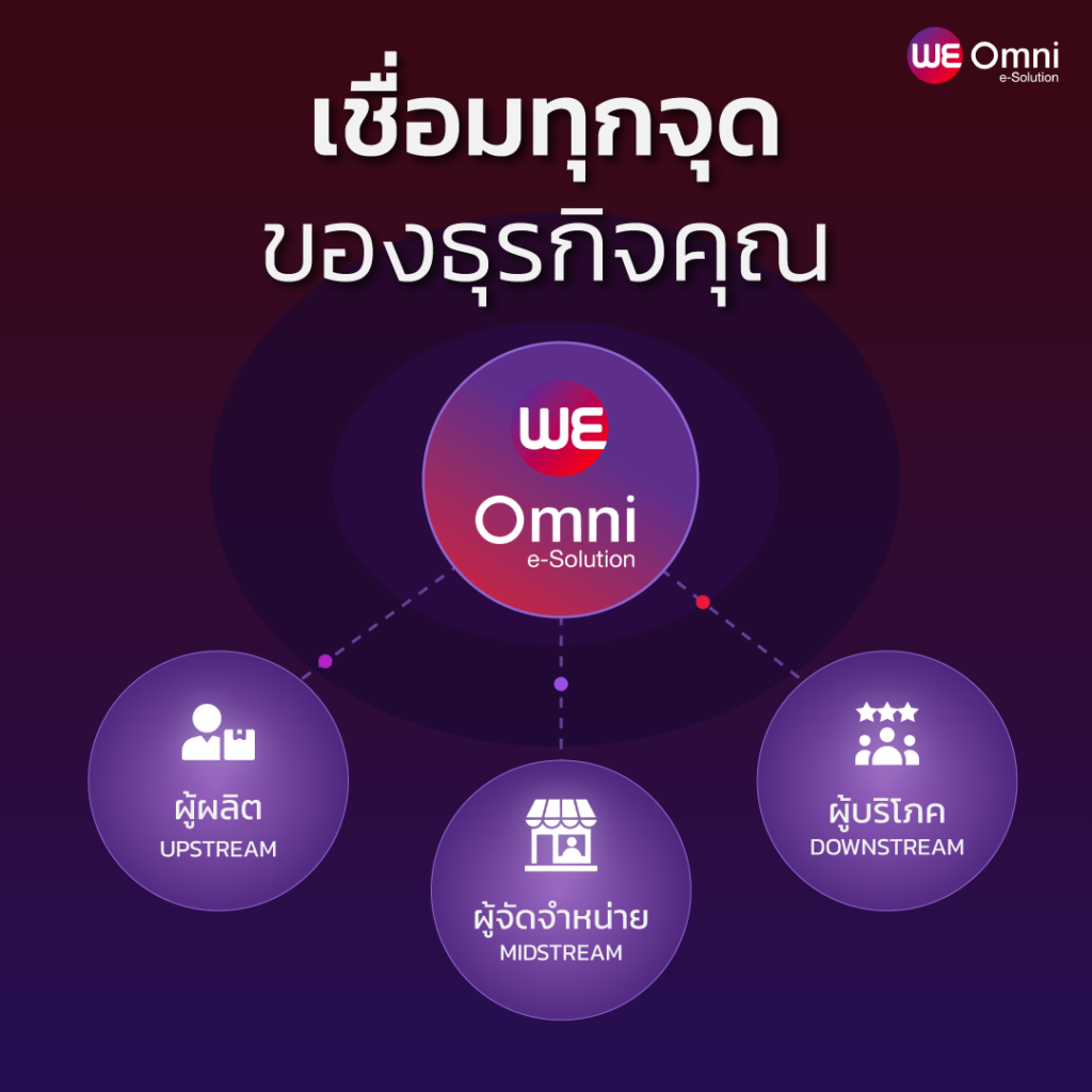 WeOmni ไม่ได้เพียงแค่ขายโซลูชัน แต่เราสร้าง ecosystem ที่ครอบคลุมทั้ง upstream → midstream → downstream — จากผู้ผลิต → ผู้จัดจำหน่าย → ผู้บริโภค เพื่อให้เติบโตได้อย่างต่อเนื่องและยั่งยืนในทุกมิติของธุรกิจ