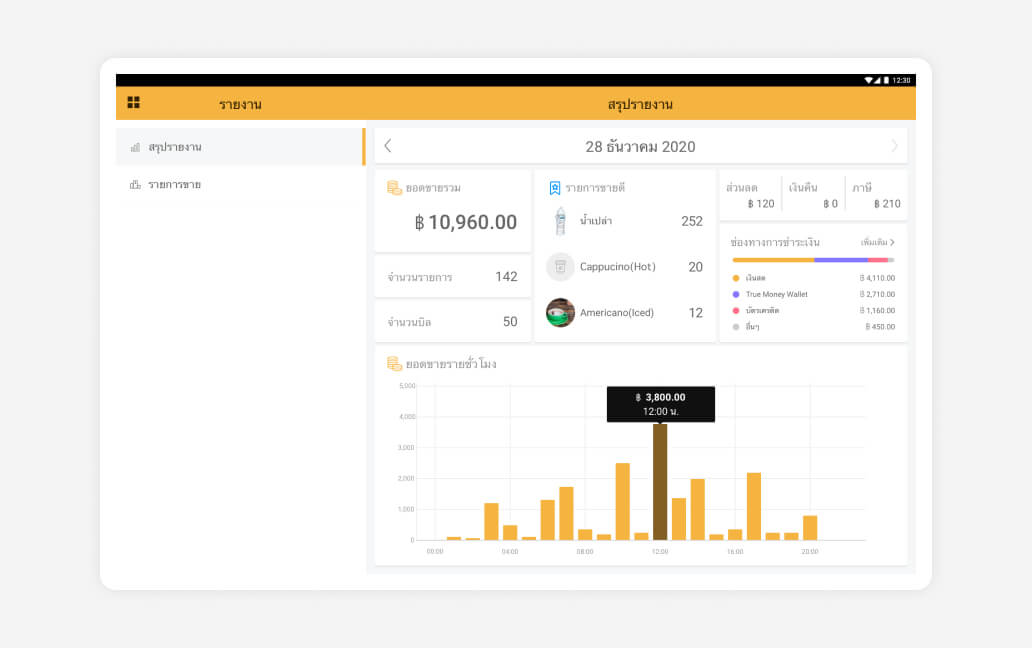 เจ้าของร้านหมดกังวลเรื่องเงินสดภายในร้านเพราะ WePOS ช่วยบันทึกช่องทางการรับชำระเงินได้ทุกรูปแบบ พร้อมแยกรายละเอียดจำนวนเงินแต่ละช่องทางช่วยให้การจัดการเงินสดภายในร้านถูกต้องและตรวจสอบได้แบบ Real-Time อีกด้วย