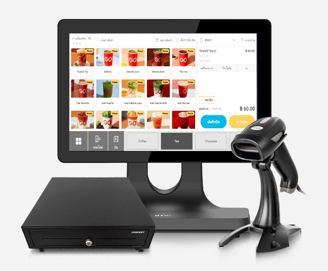 ○ ประกอบไปด้วย iMin D4 + ลิ้นชักเก็บเงิน + สแกนเนอร์