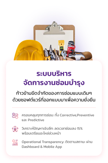ระบบช่วยตรวจจับความผิดปกติก่อนเครื่องจักรเสียจริง (Anomaly Detection) ลดเวลา Downtime ได้ 45% และช่วยลดต้นทุนการ จ้างช่างภายนอกได้ถึง 2.2 เท่าต่อปีจากการ บริหารจัดการทีมช่างที่มีประสิทธิภาพมากขึ้น